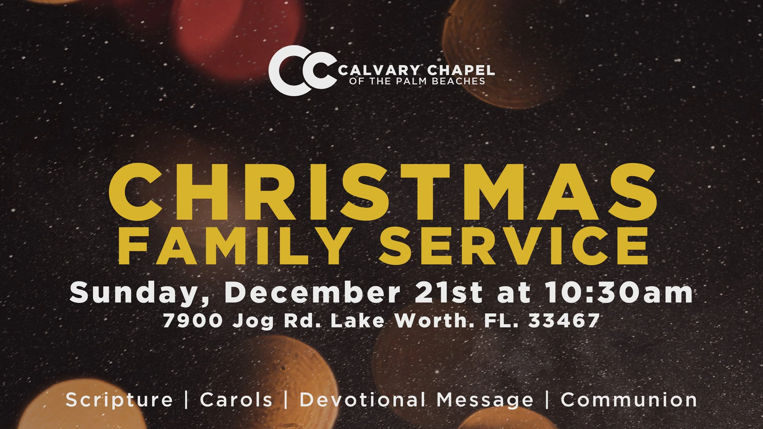 Join us this Sunday for a special Christmas celebration at Calvary Chapel of the Palm Beaches at our 10:30am service! We will have a family-style service, read through the Christmas Story, sing Christmas carols, and take communion together. We can’t wait to see you!