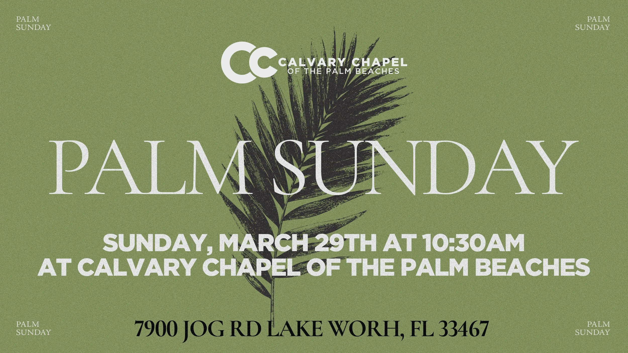 Holy Week will begin on Sunday, March 29th with our PALM SUNDAY SERVICE at 10:30am at Park Vista High School (Located at 7900 Jog Road Lake Worth, FL 33463).